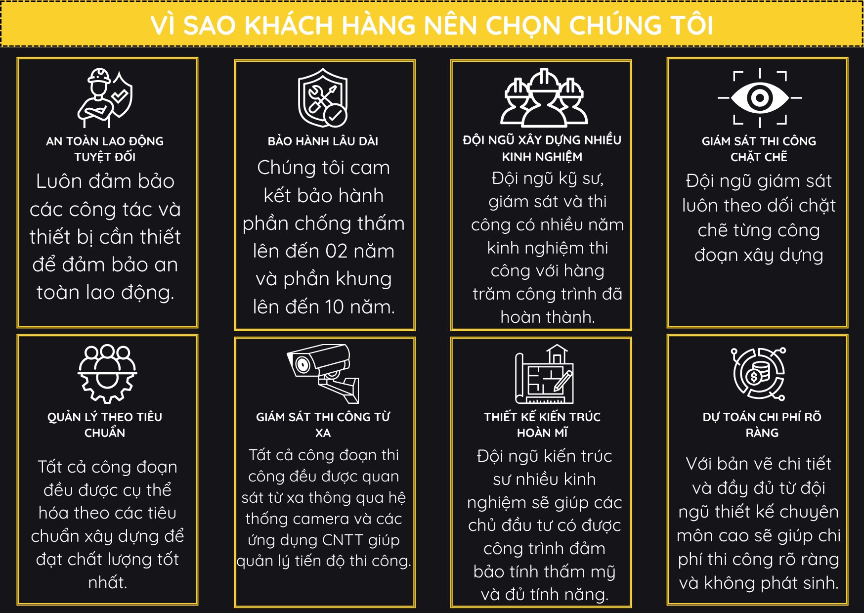 - Thi công xây dựng phần thô và ốp lát hoàn thiện kiến trúc theo tiêu chuẩn.