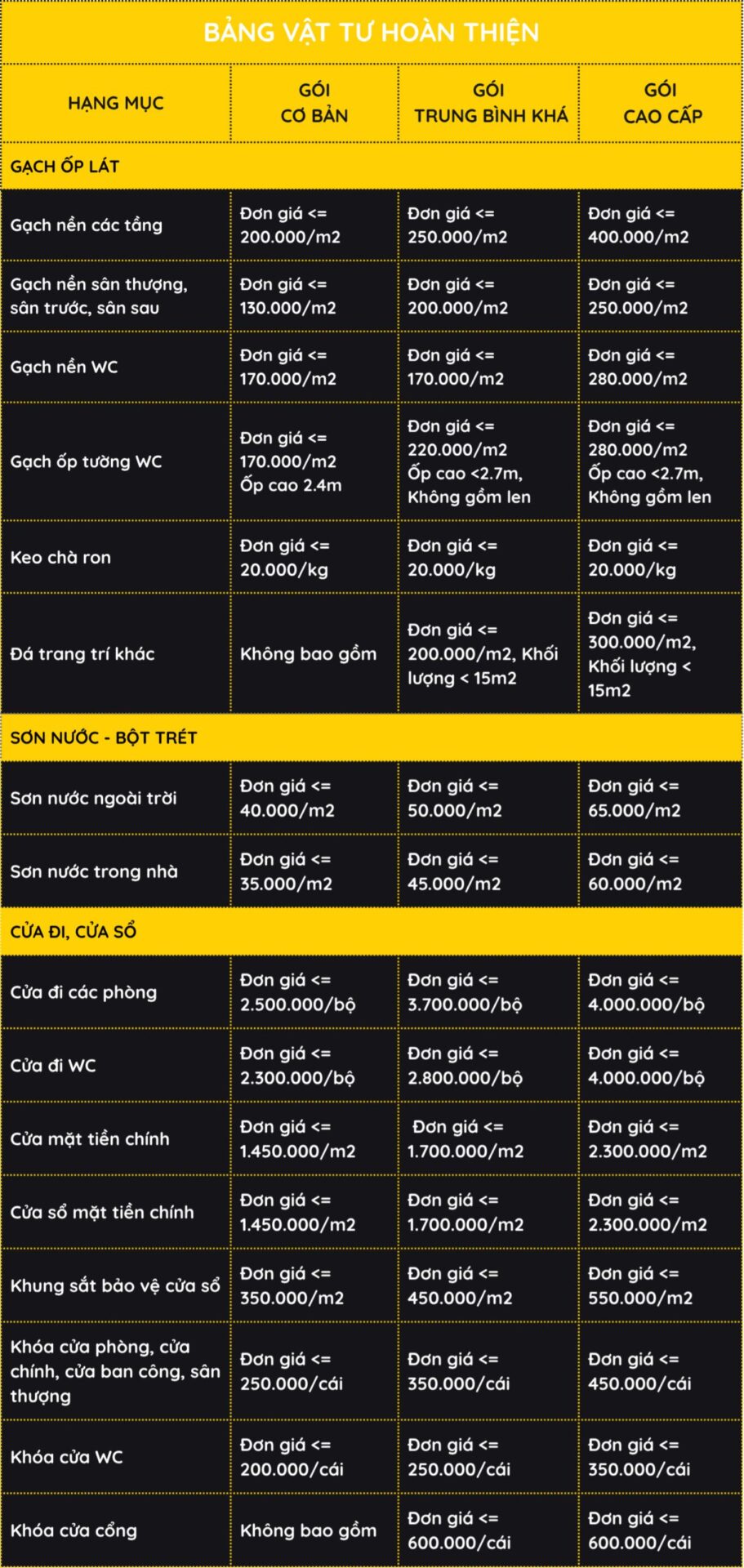 - Đơn giá có thể biến động theo diện tích, khu vực xây dựng và vật tư xây dựng mà chủ đầu tư lựa chọn.