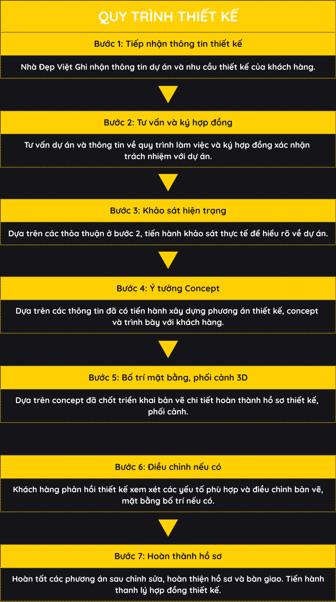 Trải qua 15 năm không ngừng phát triển, NHÀ ĐẸP VIỆT đã khẳng định vị thế là một trong những công ty hàng đầu về thiết kế và thi công nội thất tại khu vực phía Nam. Với đội ngũ hơn 100 chuyên gia giàu kinh nghiệm, chúng tôi tự hào mang đến những giải pháp thiết kế sáng tạo, tinh tế và phù hợp với phong cách sống của từng khách hàng.Điều gì làm nên sự khác biệt của NHÀ ĐẸP VIỆT ? Chính là quy trình làm việc chuyên nghiệp, minh bạch và chi tiết của chúng tôi: