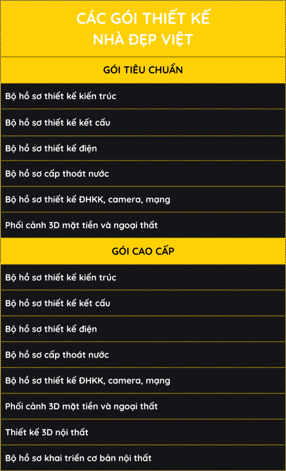 Chúng tôi sẽ cung cấp cho quý khách hàng hai gói thiết kế của NHÀ ĐẸP VIỆT để tham khảo sau đó đưa ra lựa chọn của mình.