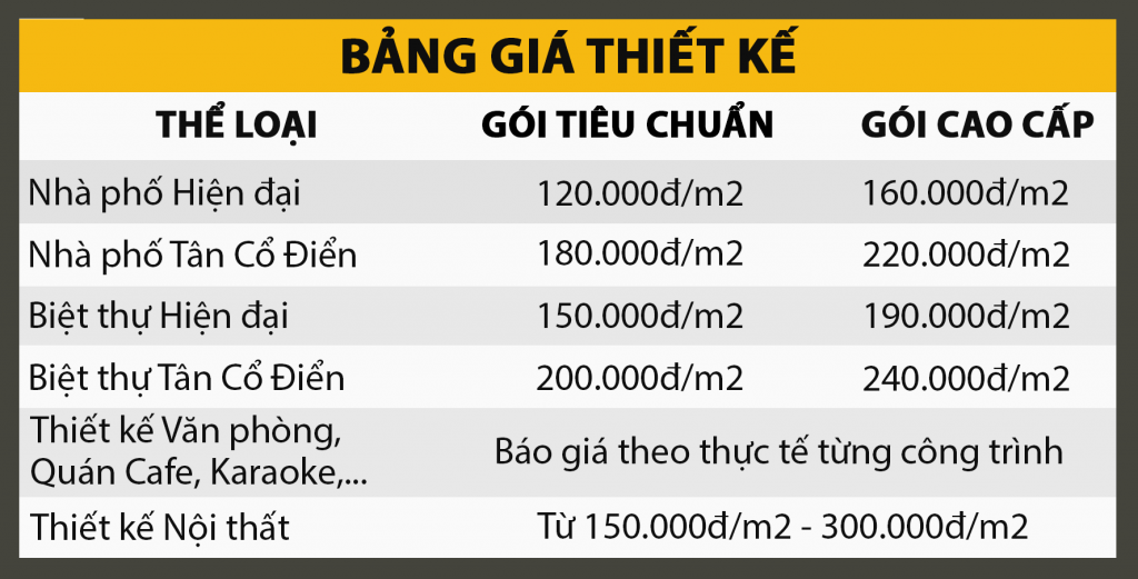 - Đơn giá có thể biến động theo diện tích, khu vực xây dựng và vật tư xây dựng mà chủ đầu tư lựa chọn.