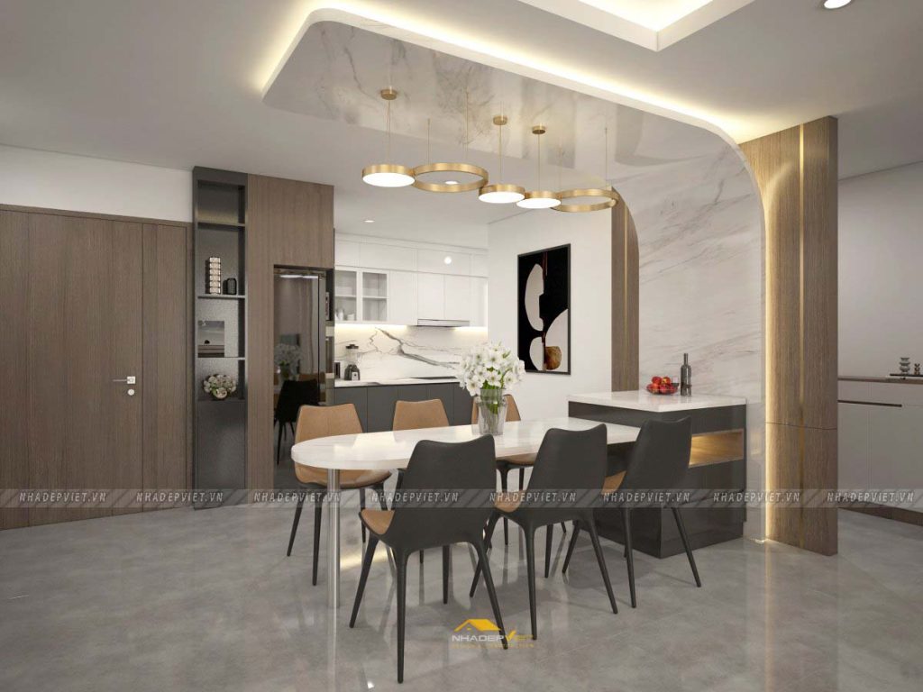 “Khám phá không gian sống hiện đại, nơi sự sang trọng và tiện nghi được kiến tạo một cách tinh tế. Từ phòng khách tràn ngập ánh sáng với trần thạch cao ấn tượng và đèn chùm độc đáo, đến khu vực bếp – bàn ăn được kết nối linh hoạt, mở ra không gian sinh hoạt chung ấm cúng. Các phòng ngủ được cá nhân hóa, mang lại cảm giác thư thái và riêng tư tuyệt đối.