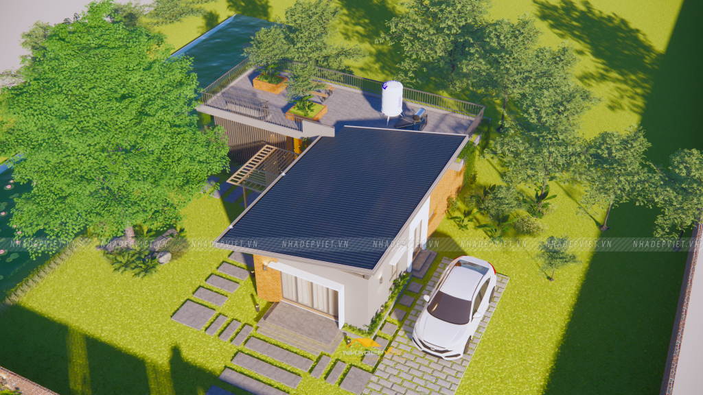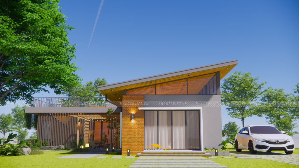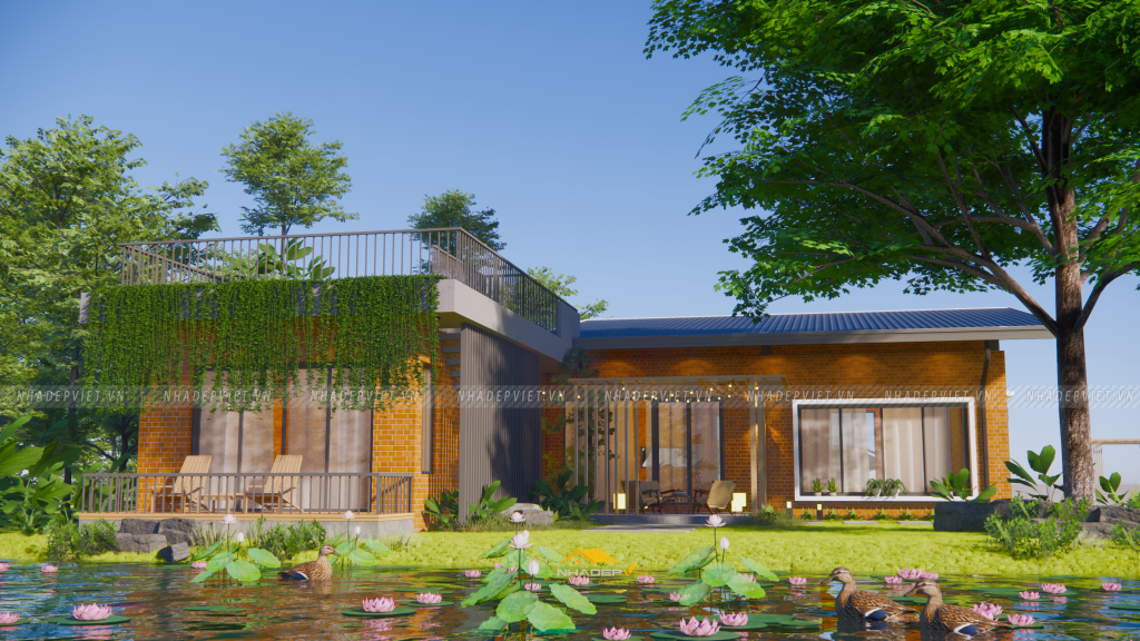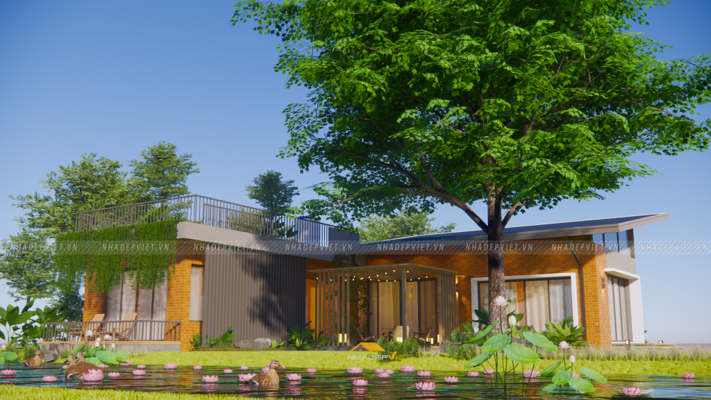 Với thiết kế mái dốc độc đáo và sự kết hợp tinh tế giữa vật liệu tự nhiên, ngôi nhà này không chỉ là không gian sống tiện nghi mà còn là một tác phẩm nghệ thuật, nơi con người và thiên nhiên hòa quyện. Hệ thống cửa kính lớn mang ánh sáng tự nhiên vào mọi ngóc ngách, xóa nhòa ranh giới giữa trong và ngoài. Tầng thượng xanh mát cùng hồ nước sinh thái thơ mộng tạo nên một không gian nghỉ dưỡng lý tưởng ngay tại nhà. Đây chính là lựa chọn hoàn hảo cho những ai đang tìm kiếm một cuộc sống an yên, đẳng cấp giữa lòng thiên nhiên.