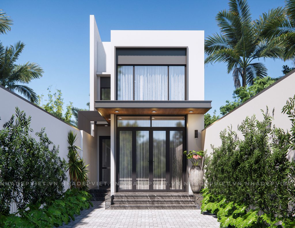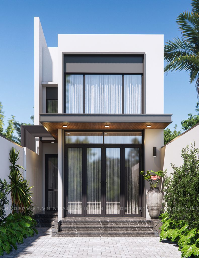Chiêm ngưỡng mẫu nhà phố hiện đại, nơi kiến trúc tối giản kết hợp hoàn hảo với nội thất tinh tế, tạo nên một không gian sống đẳng cấp và đầy tiện nghi. Mặt tiền ngôi nhà ấn tượng với các khối hình học rõ ràng, gam màu trắng chủ đạo cùng điểm nhấn màu đen và vật liệu tự nhiên, mang đến vẻ đẹp thanh lịch và bền vững.