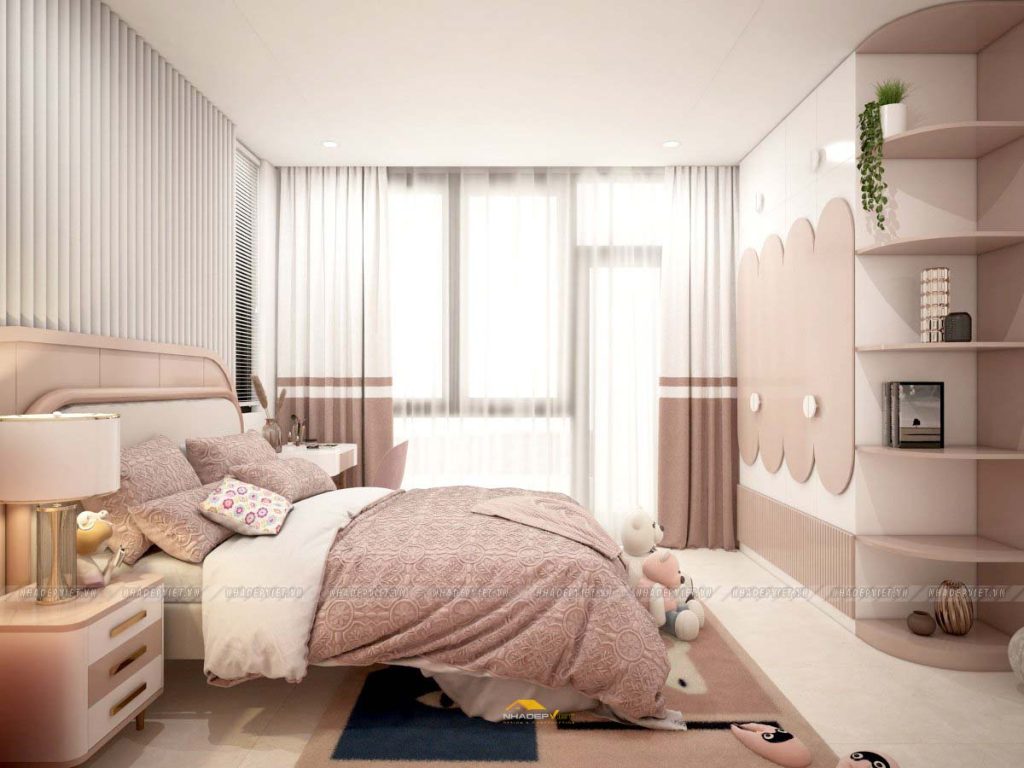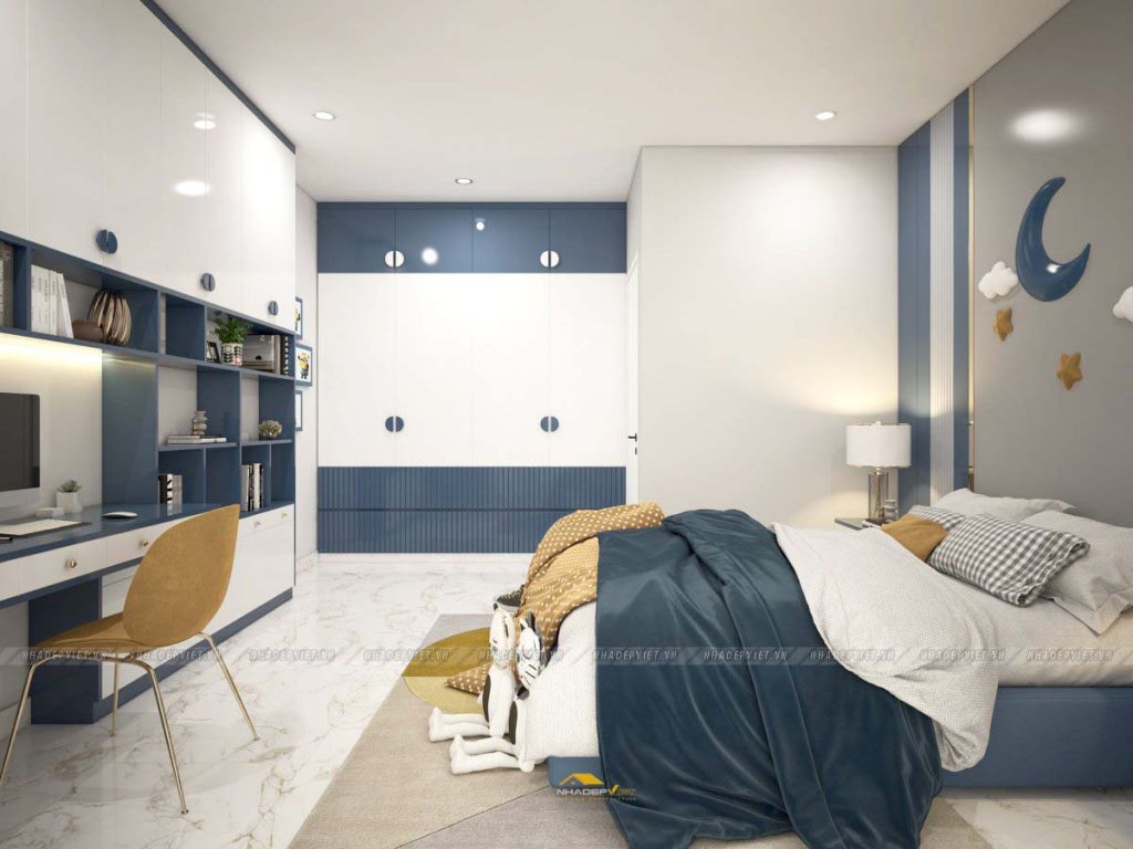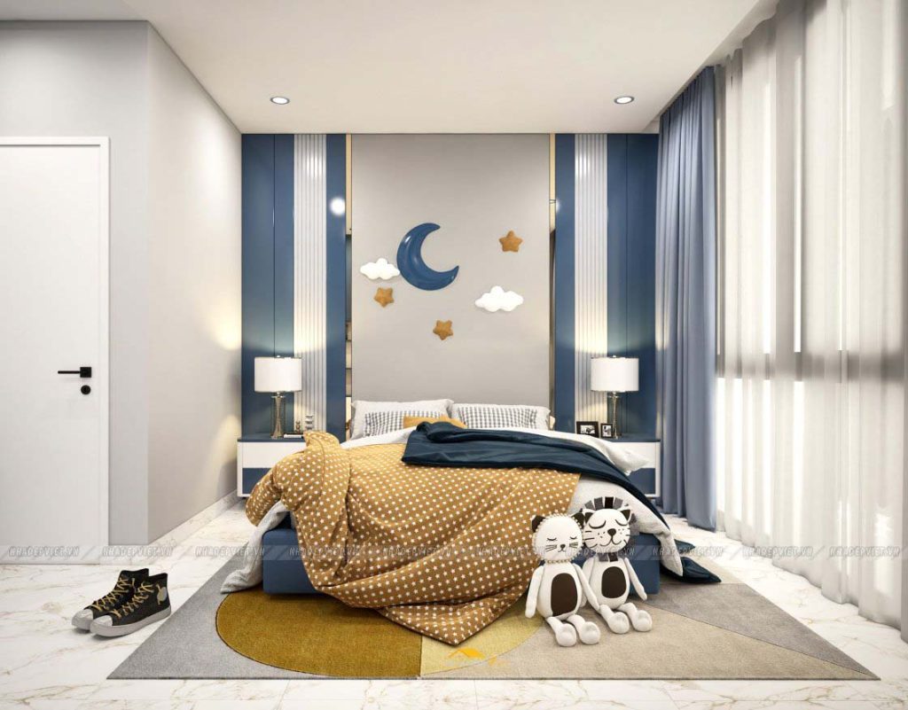 Một tổ ấm được kiến tạo để tôn vinh cá tính và đáp ứng nhu cầu của từng thành viên. Phòng khách là nơi sum họp trang trọng, với nội thất hiện đại và không gian thờ cúng được bố trí tinh tế, mang đến sự cân bằng giữa nét đẹp truyền thống và phong cách sống đương đại. Trong khi đó, không gian phòng ngủ lại là những thế giới riêng đầy màu sắc: từ phòng ngủ master tối giản, sang trọng cho bố mẹ, đến phòng ngủ cho bé trai với gam màu xanh dương năng động và phòng ngủ cho bé gái dịu dàng, ngọt ngào với tông hồng pastel. Mỗi không gian đều là một câu chuyện riêng, tạo nên một tổng thể hài hòa và tràn đầy cảm xúc.
