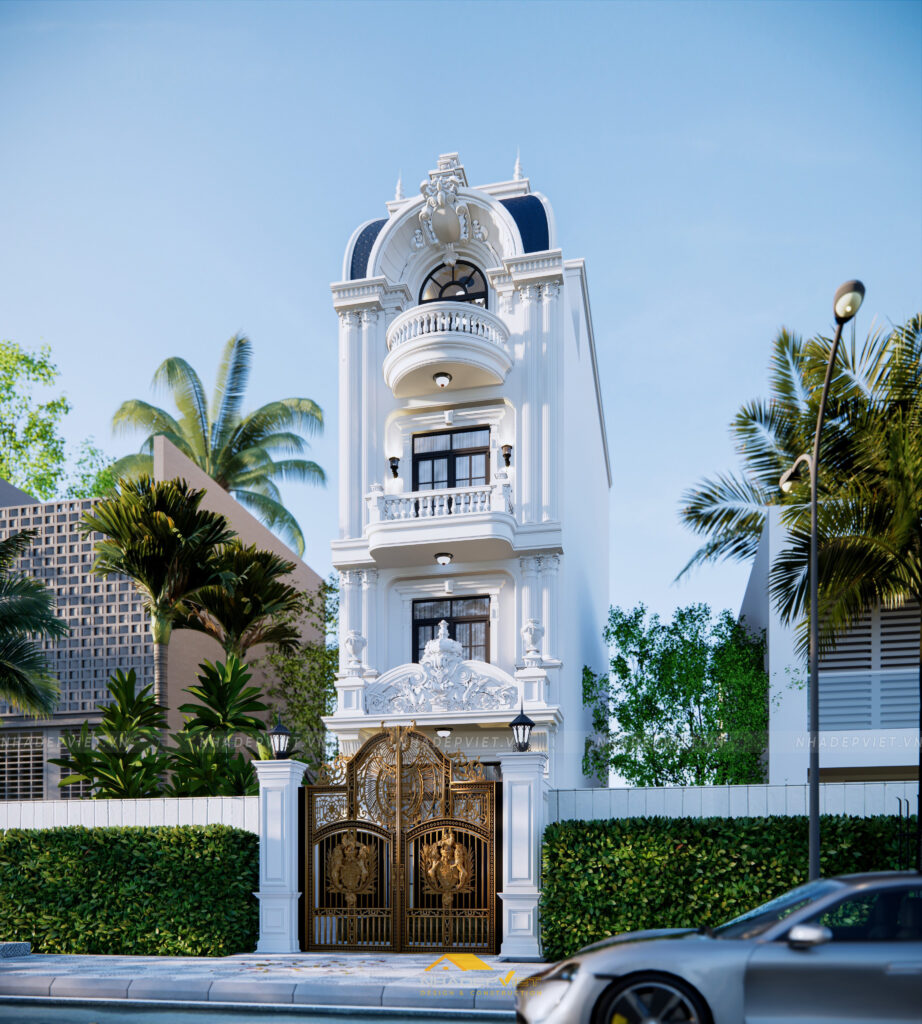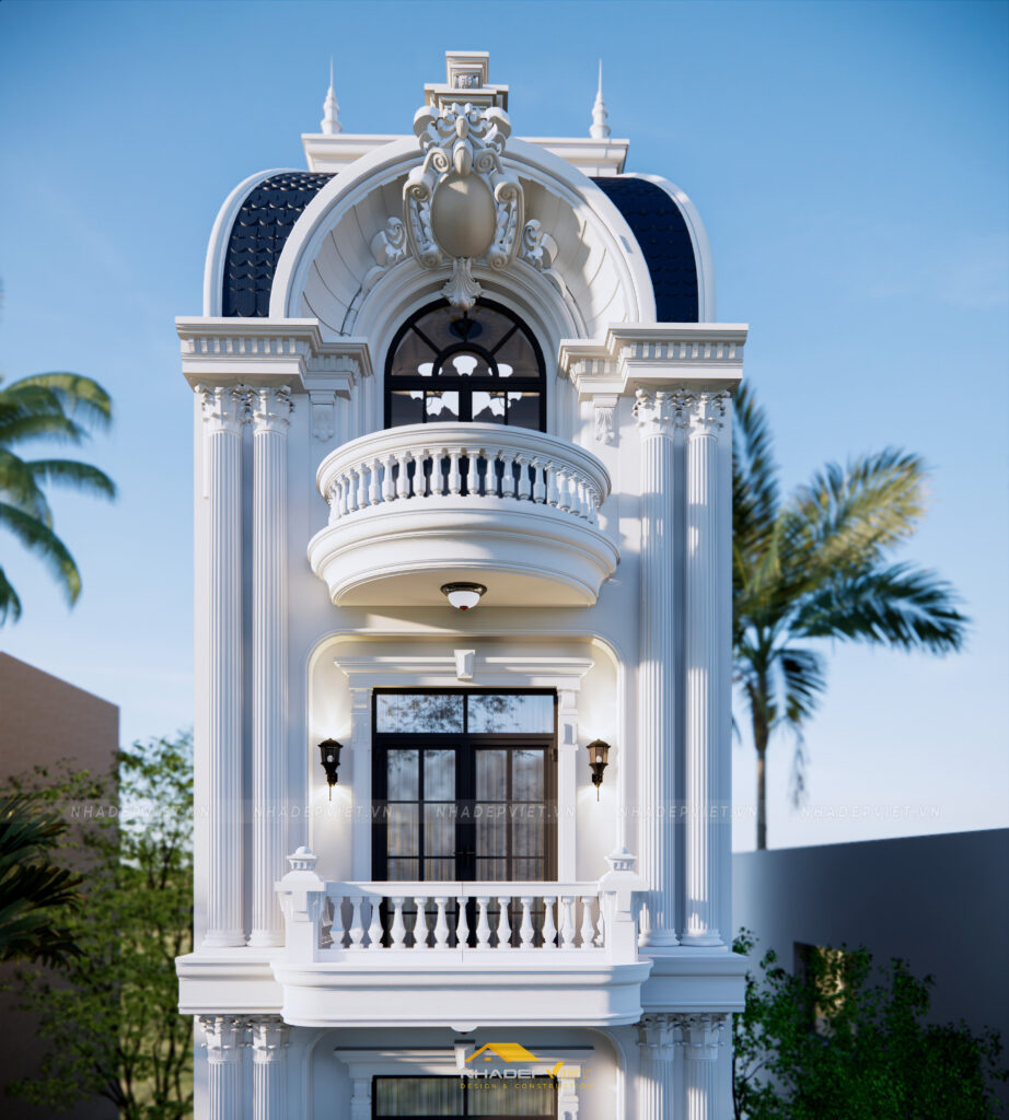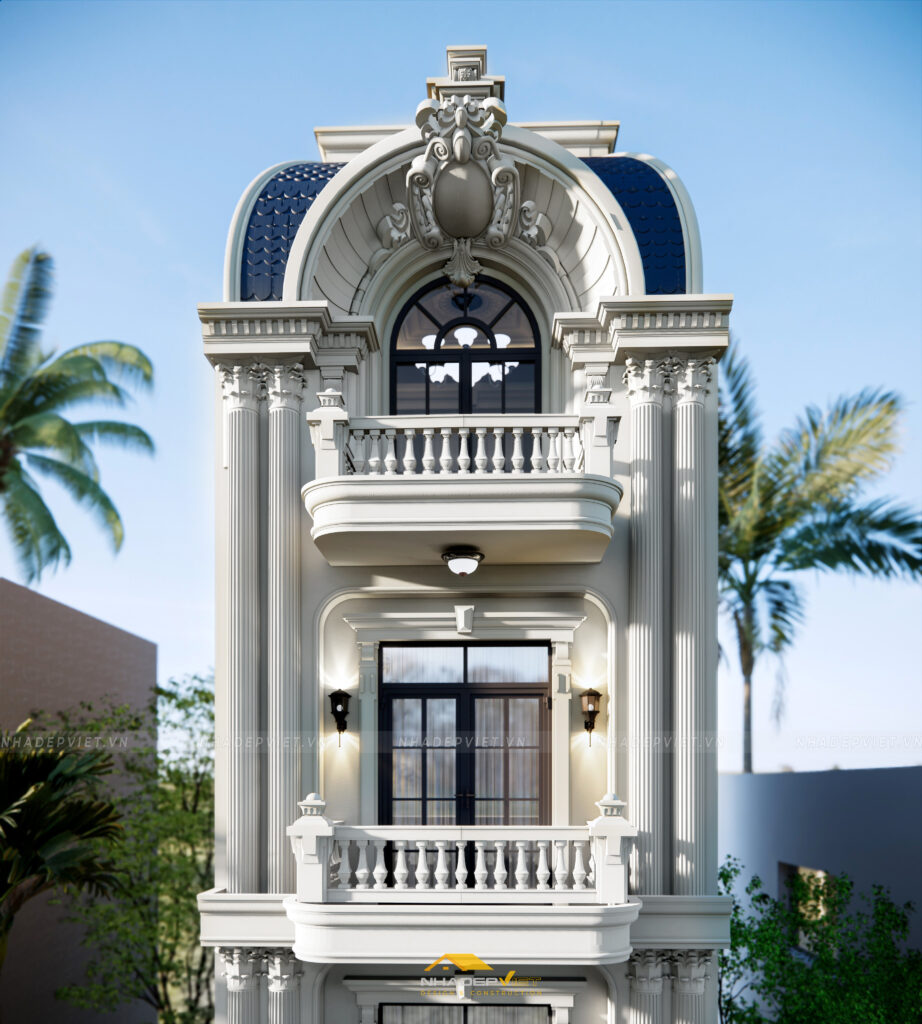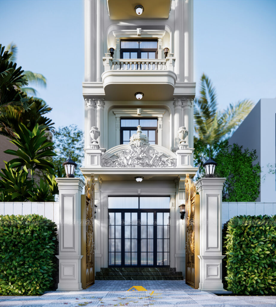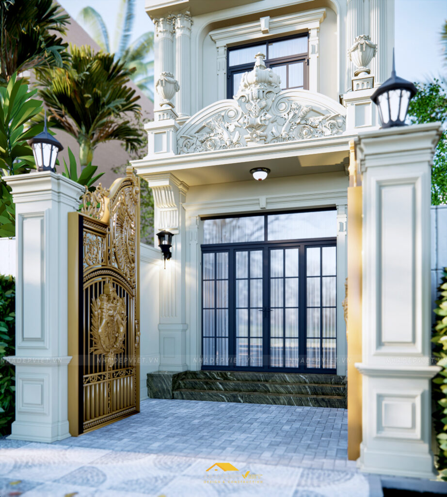 Công trình nhà phố 3 tầng phong cách tân cổ điển với đường phào chỉ nhẹ nhàng và hệ mái vòm mềm mại, tạo nên vẻ ngoài thanh lịch nhưng không thiếu phần sang trọng. Mặt tiền kính lớn mở rộng ánh sáng và mở ra không gian thị giác rộng rãi, kết nối hài hòa với thiên nhiên bên ngoài qua các ban công xanh. Kiến trúc sư đã thiết kế khéo léo các tầng theo tỷ lệ cân đối, tạo cảm giác bề thế, vững chãi mà gọn gàng. Nội thất bên trong chú trọng sự tiện nghi với bố cục linh hoạt, tối ưu công năng cho gia đình hiện đại. Mỗi chi tiết từ lan can kim loại mảnh mai, đến vật liệu đá ốp tường đều được chọn lựa tỉ mỉ, tạo nên tổng thể không gian sống đầy cảm hứng. Công trình là minh chứng cho xu hướng nhà phố hiện đại mang hơi hướng cổ điển – nơi vẻ đẹp và chức năng được kết hợp tinh tế.