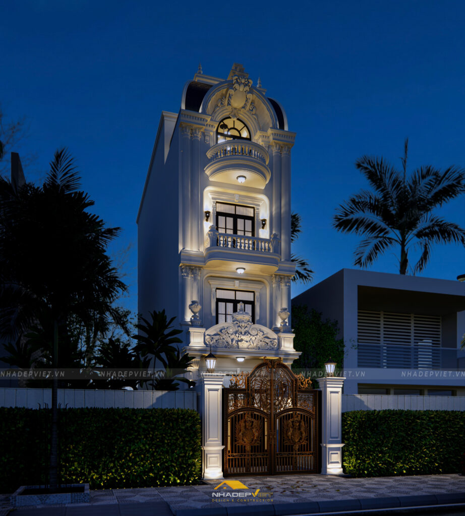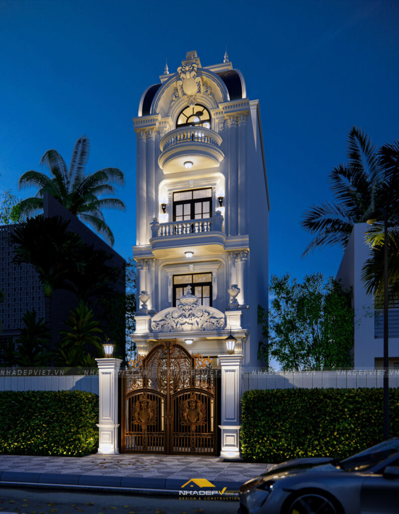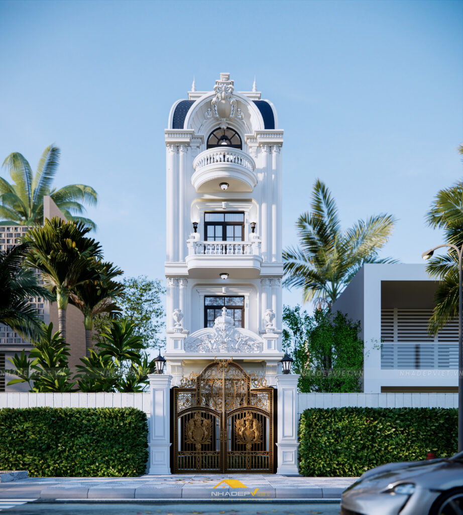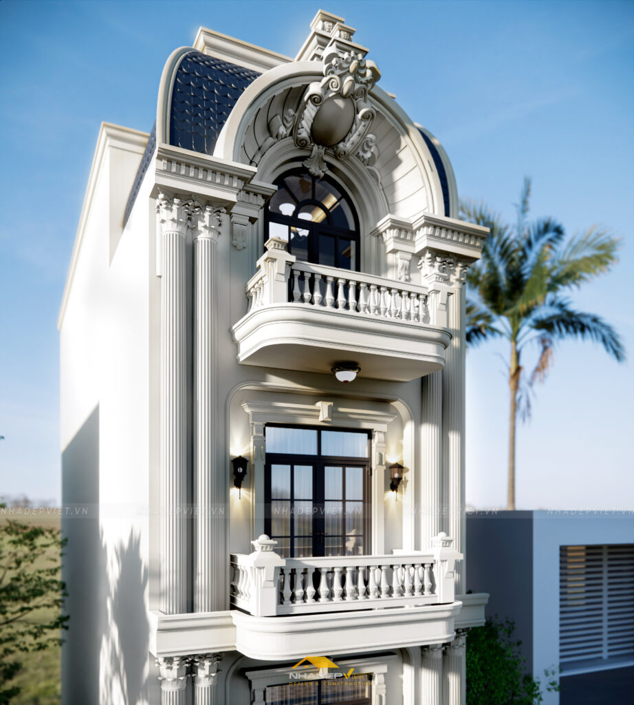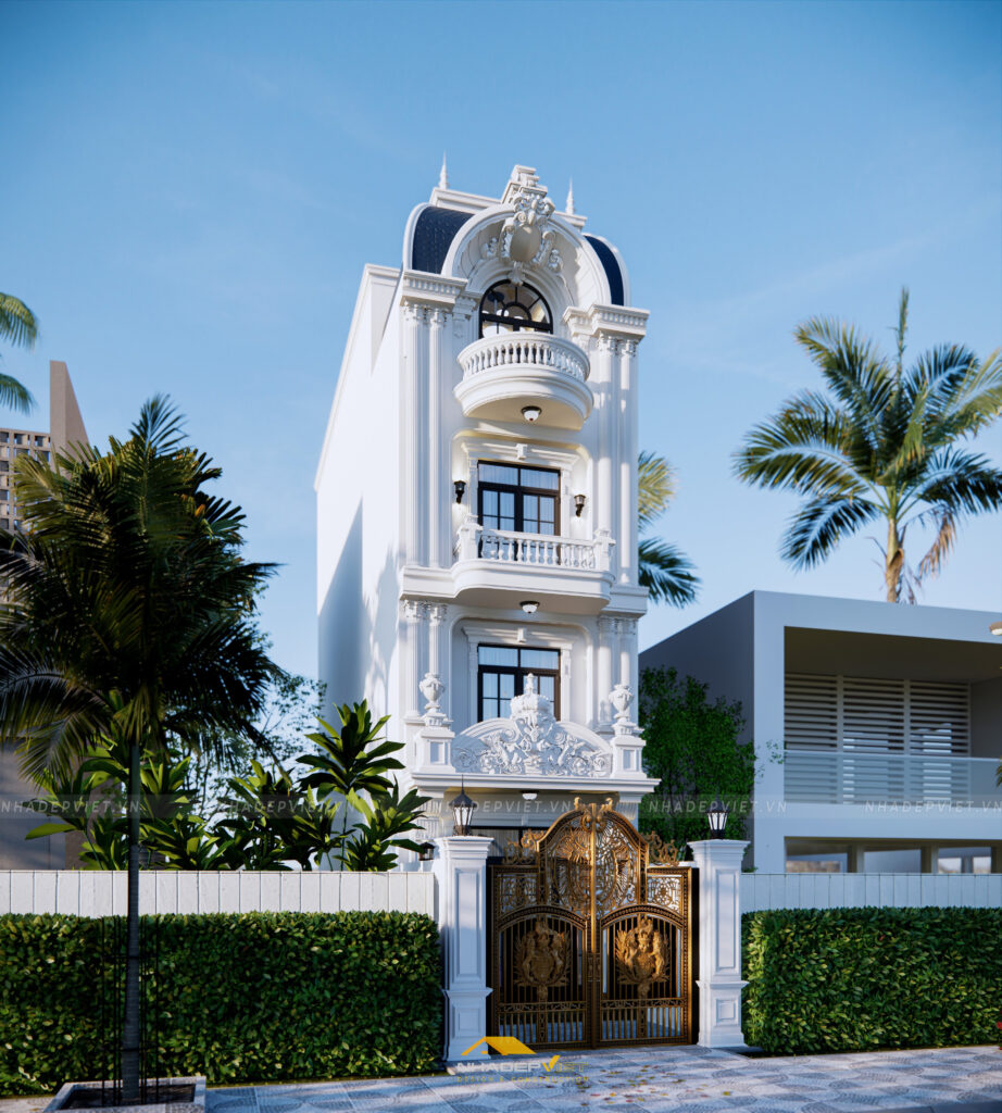 Công trình nhà phố 3 tầng phong cách tân cổ điển với đường phào chỉ nhẹ nhàng và hệ mái vòm mềm mại, tạo nên vẻ ngoài thanh lịch nhưng không thiếu phần sang trọng. Mặt tiền kính lớn mở rộng ánh sáng và mở ra không gian thị giác rộng rãi, kết nối hài hòa với thiên nhiên bên ngoài qua các ban công xanh. Kiến trúc sư đã thiết kế khéo léo các tầng theo tỷ lệ cân đối, tạo cảm giác bề thế, vững chãi mà gọn gàng. Nội thất bên trong chú trọng sự tiện nghi với bố cục linh hoạt, tối ưu công năng cho gia đình hiện đại. Mỗi chi tiết từ lan can kim loại mảnh mai, đến vật liệu đá ốp tường đều được chọn lựa tỉ mỉ, tạo nên tổng thể không gian sống đầy cảm hứng. Công trình là minh chứng cho xu hướng nhà phố hiện đại mang hơi hướng cổ điển – nơi vẻ đẹp và chức năng được kết hợp tinh tế.