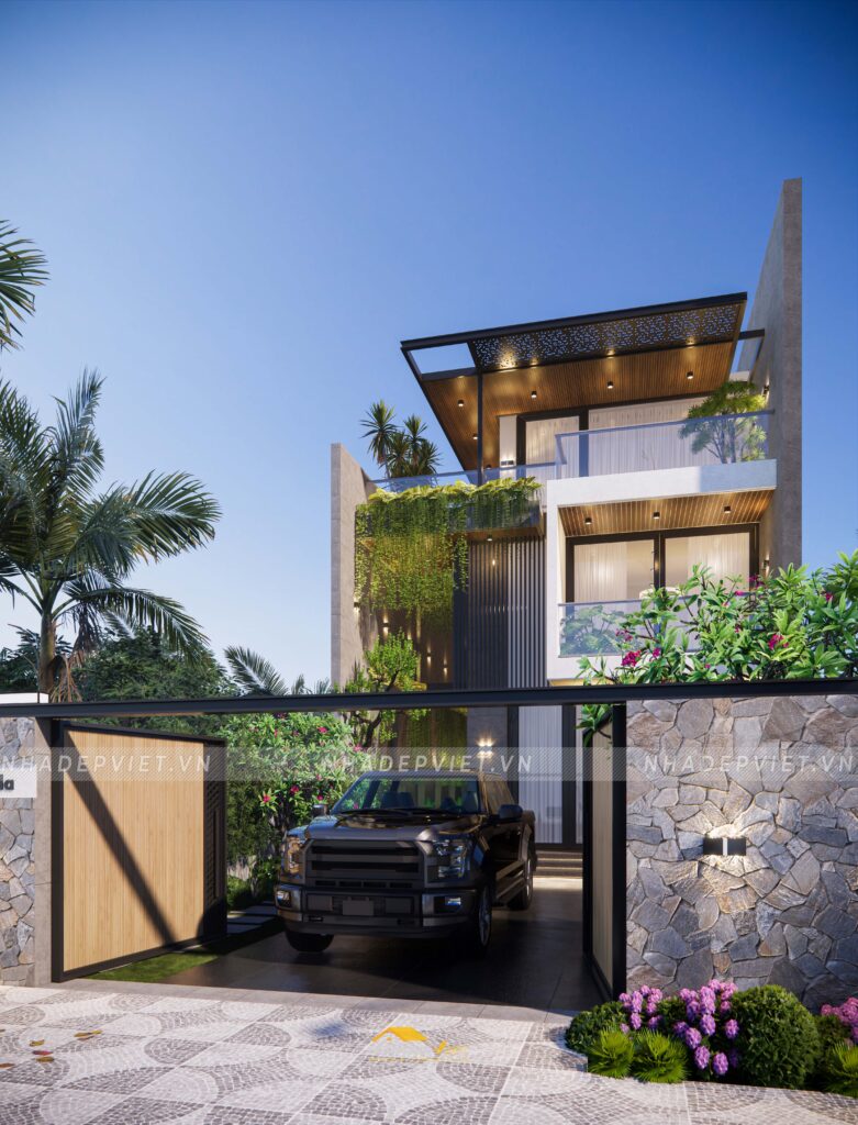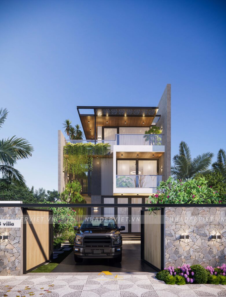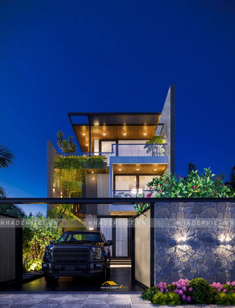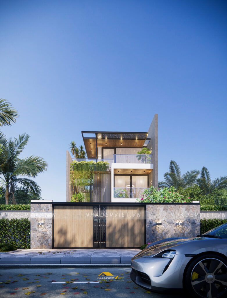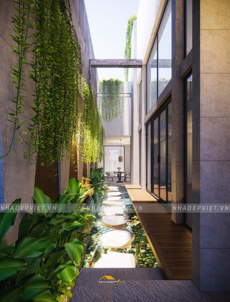 88Villa là một công trình biệt thự mang phong cách hiện đại, gây ấn tượng mạnh bởi thiết kế hồ cá koi độc đáo chạy dọc bên hông nhà – như một dòng suối nhỏ dẫn lối thiên nhiên chảy vào từng không gian sống. Tổng thể kiến trúc sử dụng ngôn ngữ hình khối đơn giản, mạch lạc, nhưng được làm mềm lại bởi hệ sinh thái nước, cây xanh và ánh sáng tự nhiên đan cài khéo léo. Không gian bên trong biệt thự được tổ chức mở, thông thoáng, giúp kết nối liền mạch giữa con người và thiên nhiên bên ngoài. Mỗi bước chân qua hành lang bên hồ đều gợi cảm giác thư giãn, thiền tịnh, lý tưởng cho một lối sống chậm và sâu sắc. Đây không chỉ là nơi ở, mà còn là một trải nghiệm sống nghệ thuật – nơi người ta có thể cảm nhận sự bình yên, tinh tế và cá tính trong từng chi tiết nhỏ. 88Villa chính là minh chứng cho xu hướng kiến trúc hiện đại biết lắng nghe và giao hòa cùng thiên nhiên.