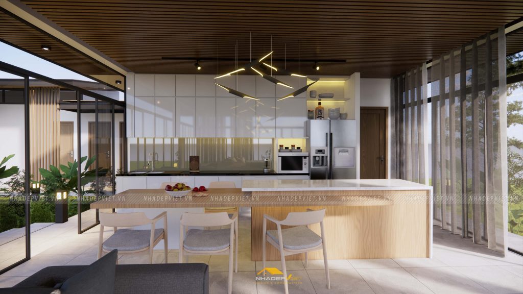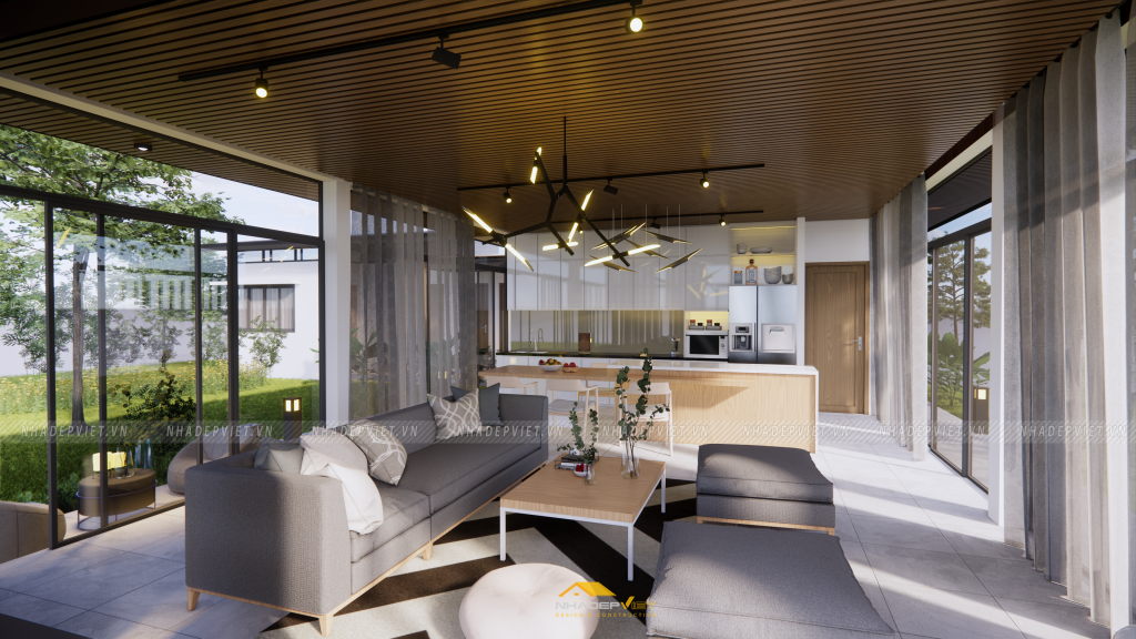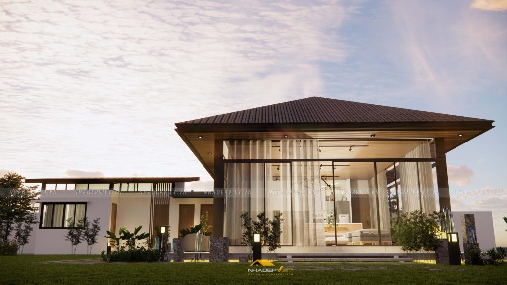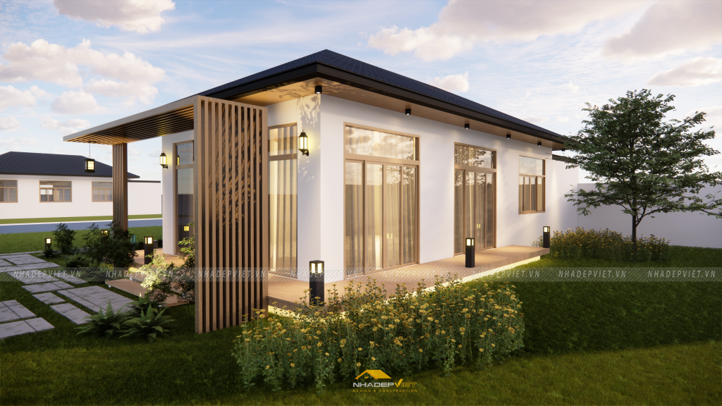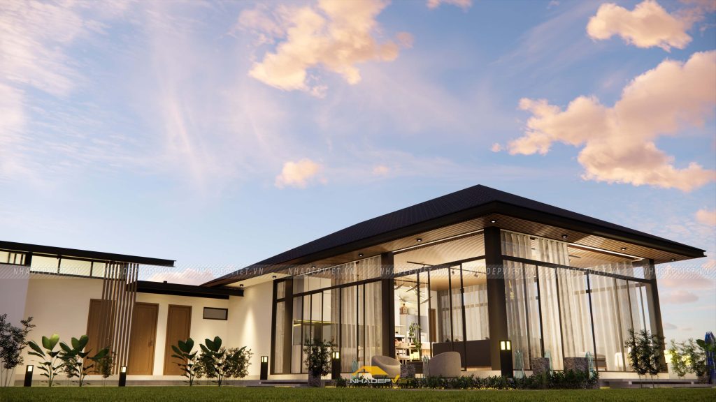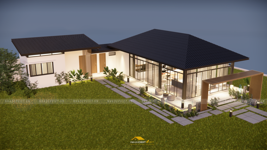 Mẫu nhà vườn này là sự kết hợp hoàn hảo giữa kiến trúc hiện đại và phong cách tối giản, tạo nên một không gian sống tinh tế và đầy cảm hứng. Với đặc trưng mái Nhật thanh thoát và hệ thống cửa kính lớn bao quanh, ngôi nhà không chỉ đón trọn vẹn ánh sáng tự nhiên mà còn mở ra tầm nhìn khoáng đạt ra khu vườn xanh mát. Thiết kế đề cao sự kết nối với thiên nhiên, mang lại cảm giác thư thái, an yên, là lựa chọn lý tưởng cho những ai mong muốn một tổ ấm nhẹ nhàng, thanh lịch và tràn đầy năng lượng tích cực.