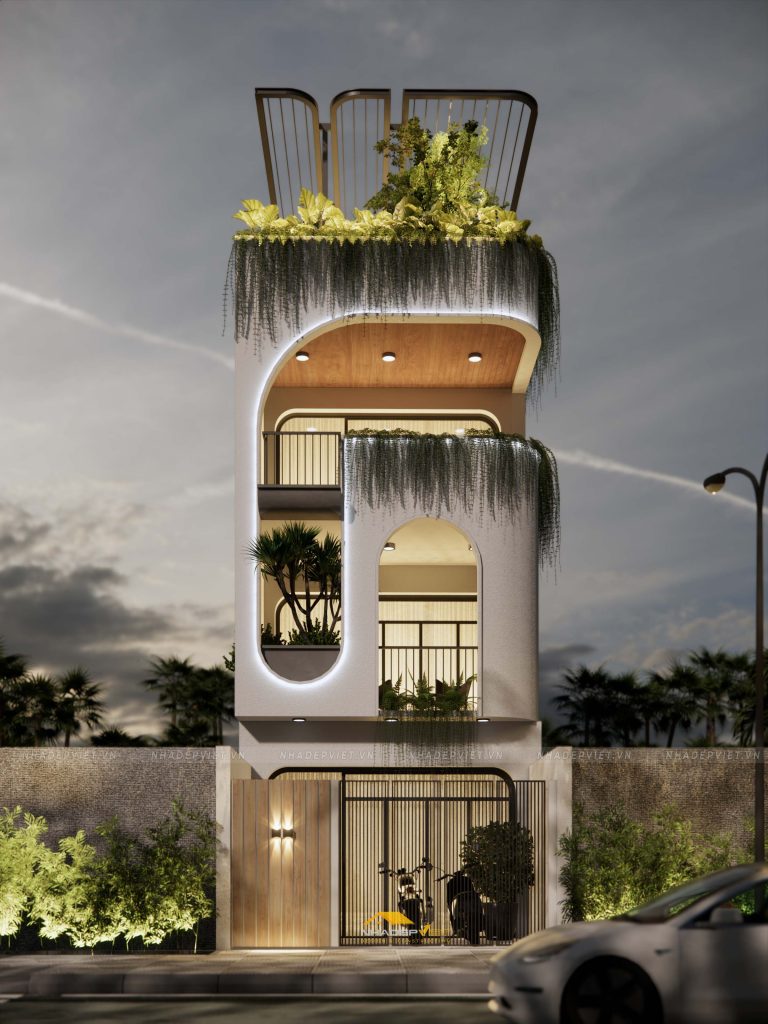Đắm mình vào không gian sống xanh mát và đầy cảm hứng với ngôi nhà phố hiện đại này. Thiết kế độc đáo với những đường cong mềm mại, điểm xuyết bởi cây xanh rủ thơ mộng, tạo nên một ốc đảo yên bình ngay giữa lòng đô thị. Từ ban công thoáng đãng đến khu vườn trên mái, mọi góc nhìn đều tràn ngập sắc xanh, mang đến trải nghiệm sống gần gũi thiên nhiên, thư thái và tiện nghi bậc nhất. Khám phá ngay tổ ấm lý tưởng nơi sự sang trọng và bình yên giao hòa!