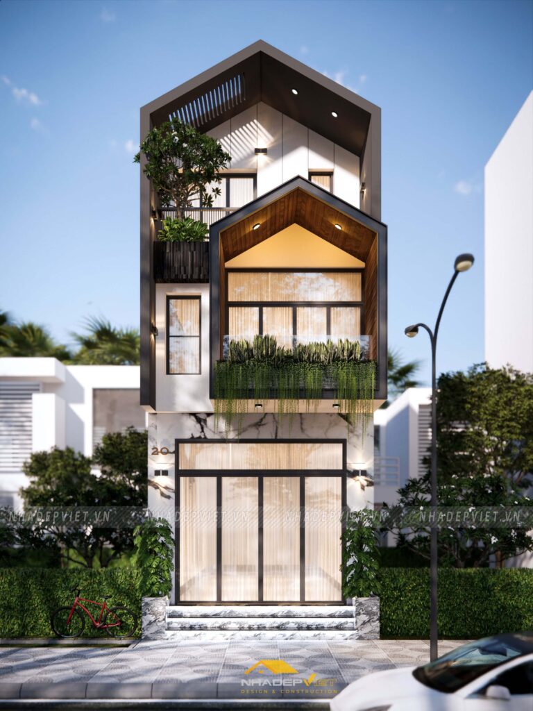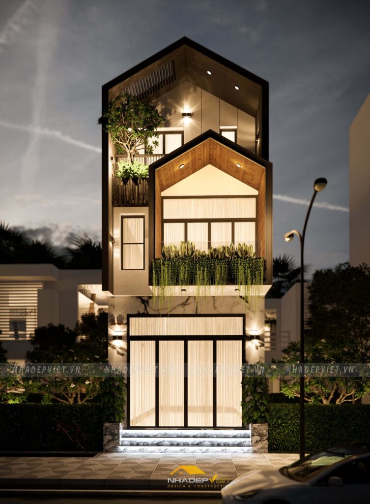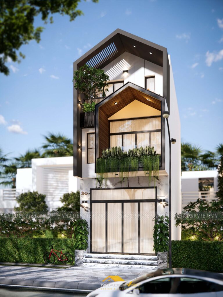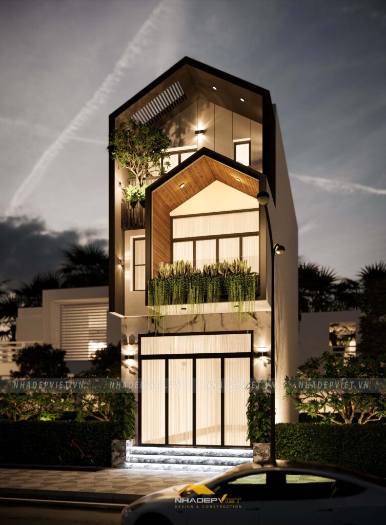 Nhà phố Anh Đạt là minh chứng thuyết phục cho kiến trúc hiện đại đẳng cấp trong đô thị, với cấu trúc 7 tầng vững chãi, mặt tiền kính rộng tô điểm bằng khung bê tông kết hợp mảng xanh tự nhiên trên ban công và sân thượng. Áp dụng cấu trúc mở, các tầng được kết nối bằng cầu thang giữa trung tâm, tận dụng tối đa ánh sáng và thông gió chéo, mang lại cảm giác rộng rãi dù xây dựng trên lô đất 12×19 m. Không gian xanh được bố trí xen kẽ qua các lớp cây leo, chậu trồng lớn tại các tầng trên, tạo nên “dải thiên nhiên” trải dài xuyên suốt công trình. Vật liệu kính – bê tông – cây xanh kết hợp cân bằng giữa vẻ ngoài cứng cáp và cảm giác mềm mại, ấm áp mà vẫn tiết kiệm năng lượng. Nội thất bên trong hướng đến phong cách tối giản, tiện nghi, phù hợp với nhu cầu sinh hoạt hiện đại. Nhà Anh Đạt không chỉ là nơi ở, mà còn là tuyên ngôn kiến trúc về một cuộc sống kết nối: giữa con người, đô thị và thiên nhiên trong cùng một không gian.