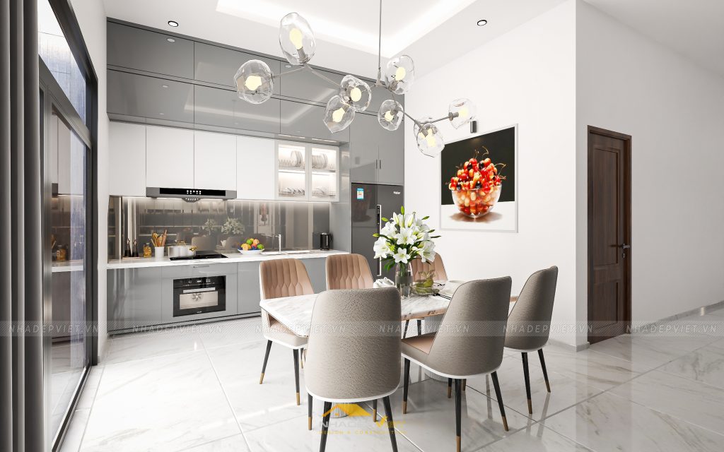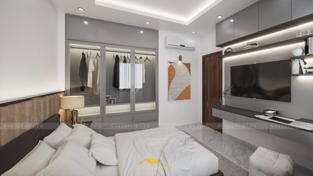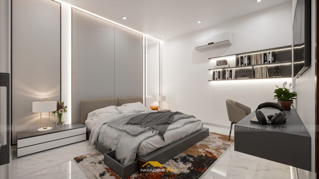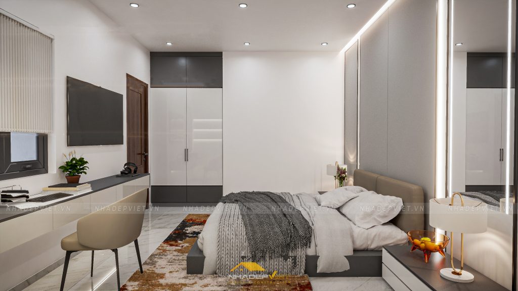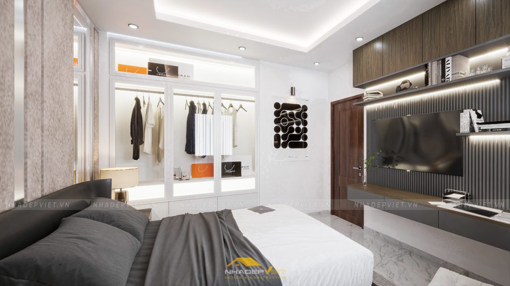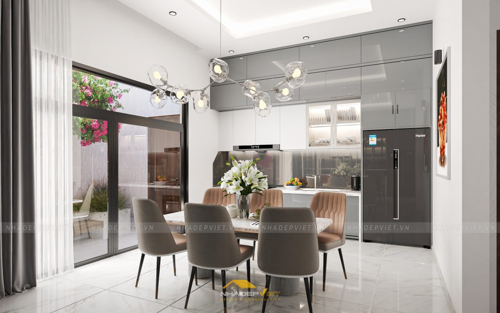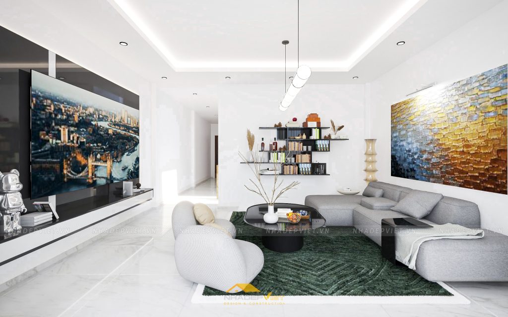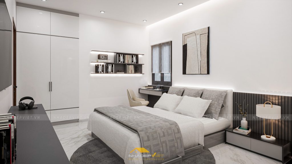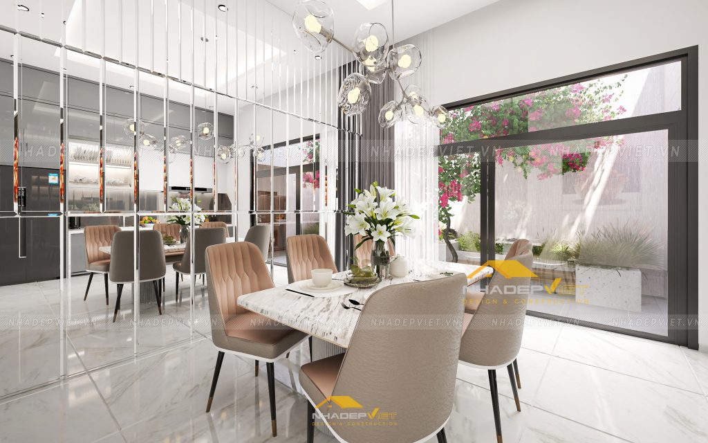 nội thất hiện đại, nơi sự tinh tế trong từng đường nét và sự tối ưu trong công năng được đặt lên hàng đầu. Từ phòng ngủ master tiện nghi với tủ quần áo cánh kính sang trọng và khu vực giải trí tích hợp, tạo nên không gian nghỉ ngơi thư giãn và riêng tư. Đến khu vực bàn ăn và bếp hiện đại, tràn ngập ánh sáng tự nhiên và tầm nhìn ra khu vườn xanh mát, lý tưởng cho những bữa ăn sum vầy. Và cuối cùng là phòng khách rộng rãi, bố trí khoa học với sofa êm ái, kệ sách độc đáo và những tác phẩm nghệ thuật hiện đại, mang đến sự thoải mái và phong cách. Mỗi không gian đều được chăm chút tỉ mỉ, sử dụng gam màu trung tính kết hợp điểm nhấn màu sắc, khẳng định một phong cách sống đẳng cấp, tiện nghi và đầy cảm hứng.