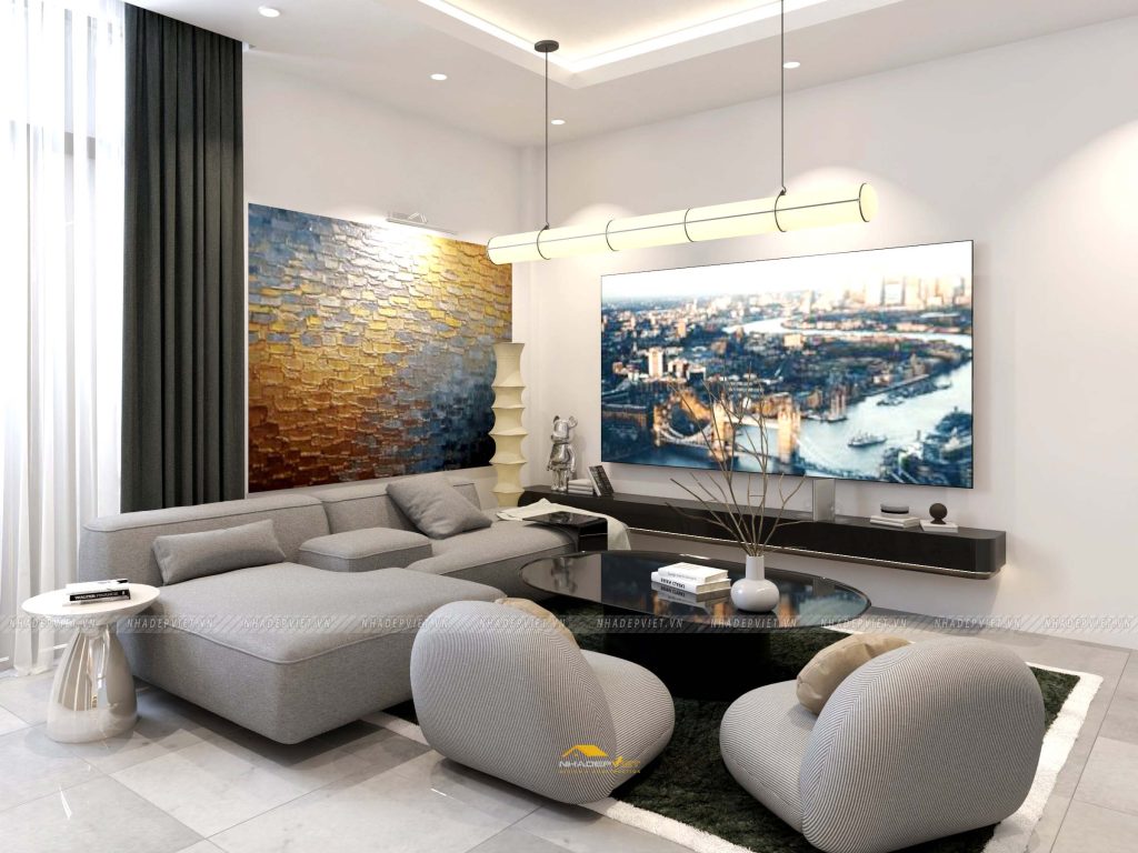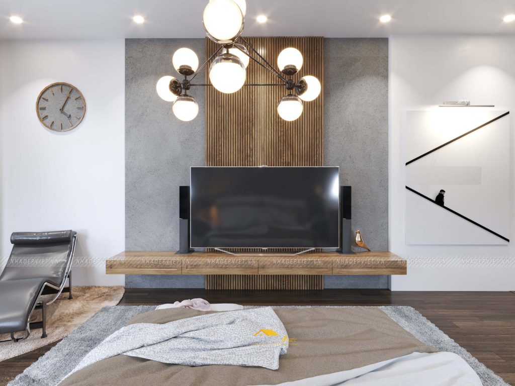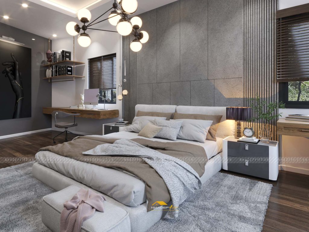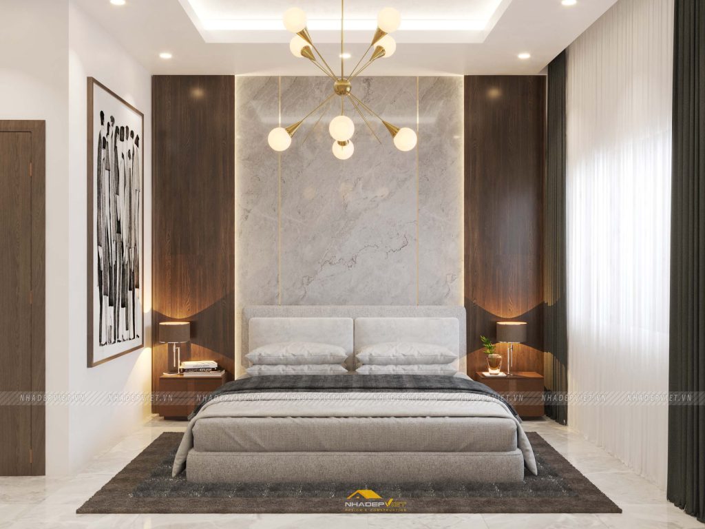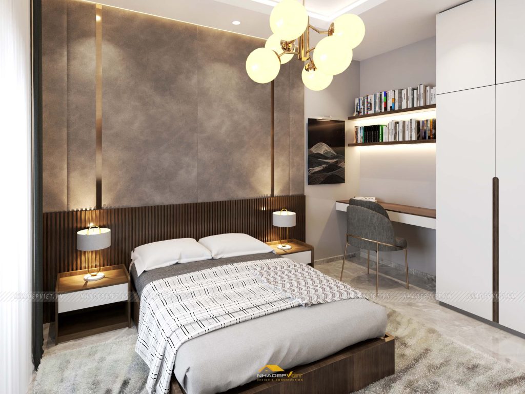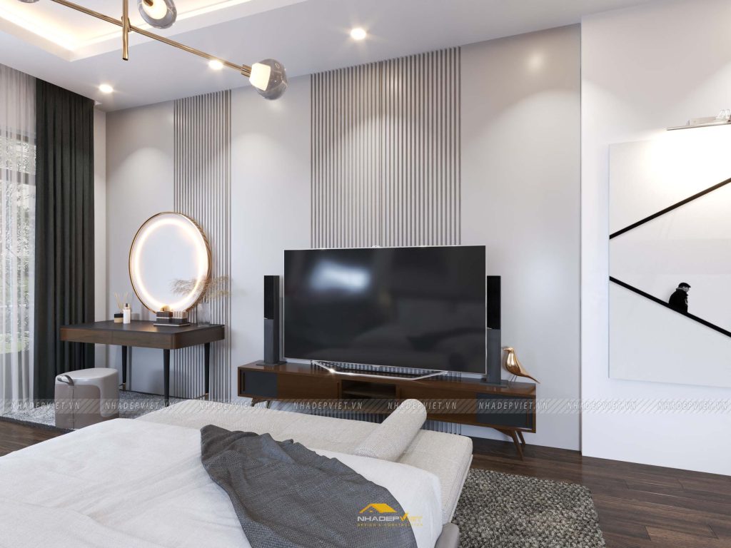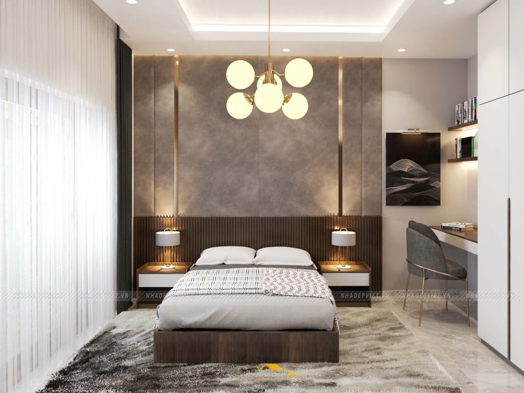Thiết kế nội thất mang phong cách hiện đại sang trọng, sử dụng tông màu trung tính làm chủ đạo, tạo nên cảm giác ấm cúng và đẳng cấp. Phòng ngủ rộng thoáng với ánh sáng tự nhiên dịu nhẹ, kết hợp cùng đồ nội thất cao cấp và điểm nhấn nghệ thuật tinh tế. Phòng thay đồ được bố trí khoa học với hệ tủ trưng bày sang trọng, ánh sáng LED âm tủ làm nổi bật từng chi tiết, đem lại cảm giác như bước vào một boutique cao cấp tại gia.