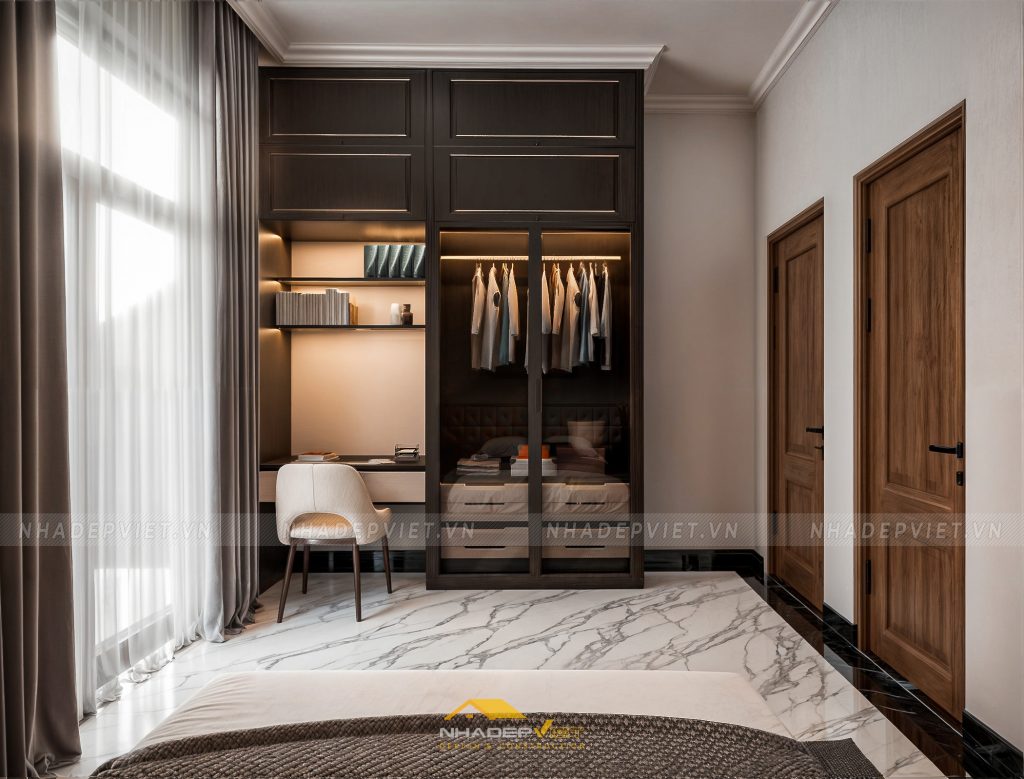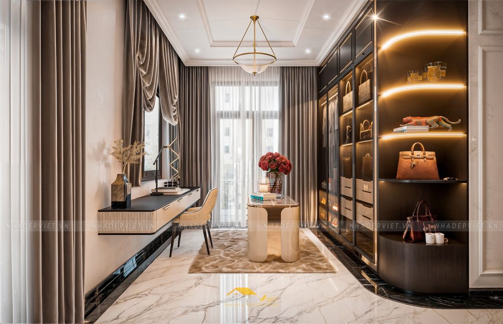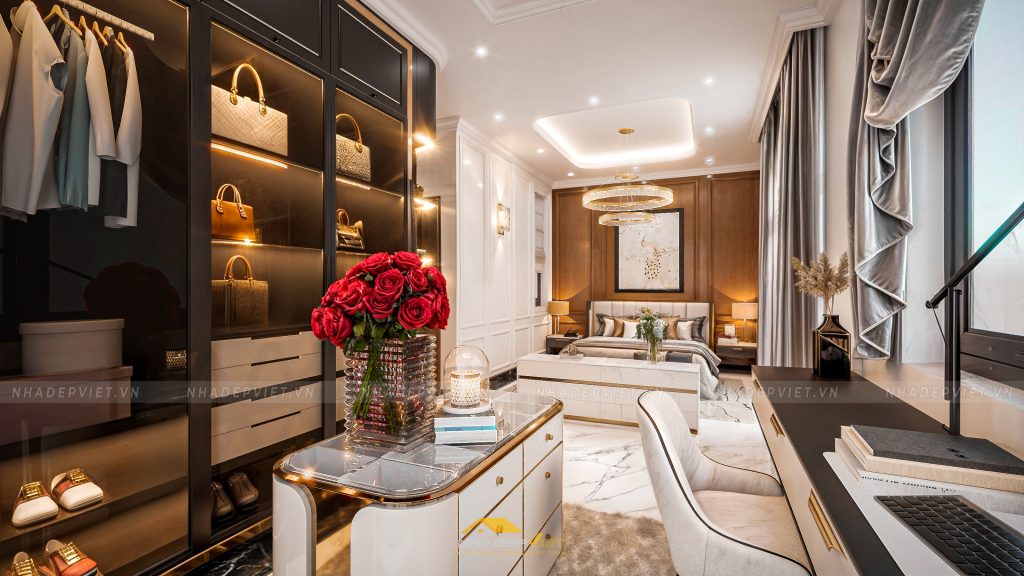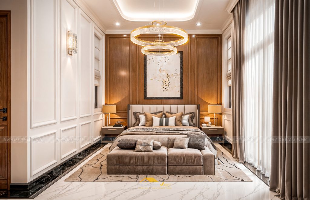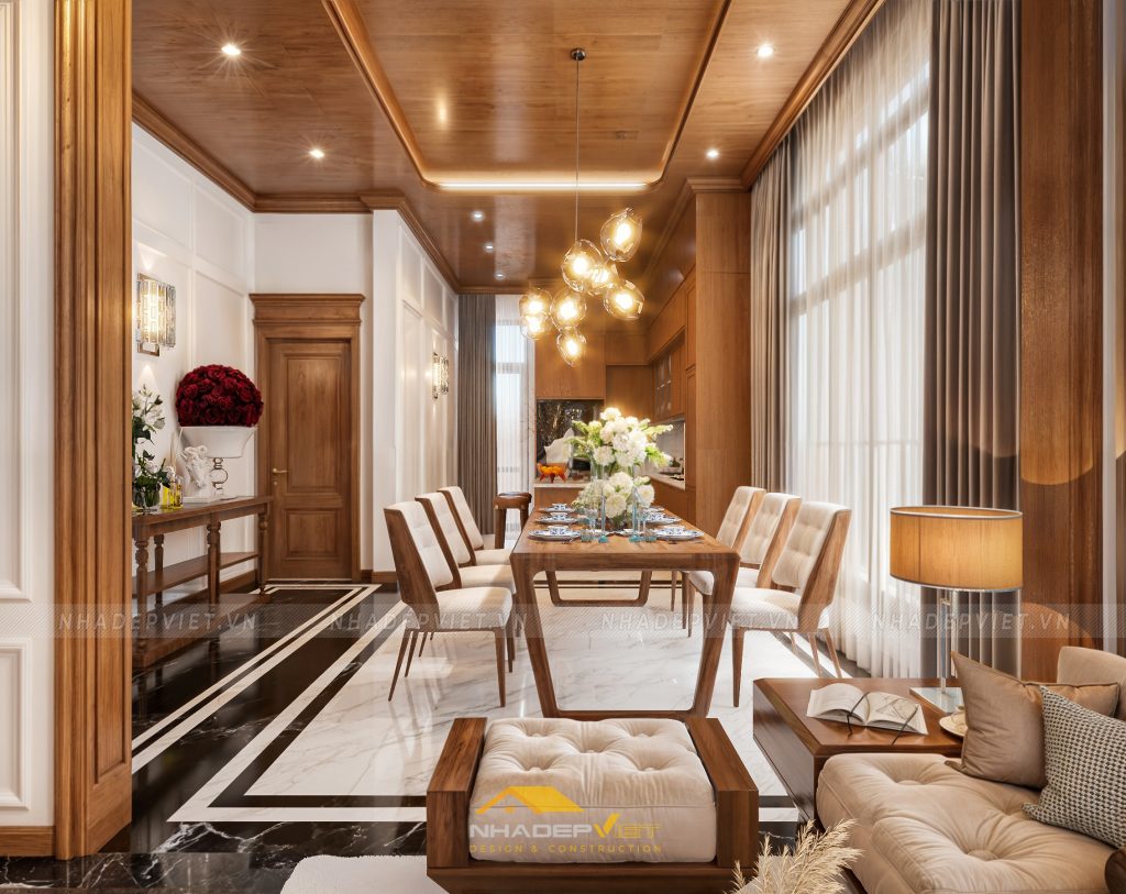 Không gian sống đỉnh cao, nơi vẻ đẹp vượt thời gian của gỗ tự nhiên hòa quyện với thiết kế hiện đại và sự tiện nghi tối đa. Từ sảnh phòng khách rộng lớn với trần nhà cao, đèn chùm ấn tượng và cầu thang gỗ uốn lượn đầy nghệ thuật, đến khu vực đậu xe tích hợp tinh tế, khẳng định phong cách sống thượng lưu. Không gian phòng ngủ được thiết kế ấm cúng, riêng tư với tủ quần áo cánh kính sang trọng và tầm nhìn mở ra bên ngoài. Mỗi chi tiết đều được chăm chút tỉ mỉ, từ chất liệu cao cấp đến cách bố trí khoa học, tạo nên một tổng thể hài hòa, đẳng cấp và đầy cá tính.