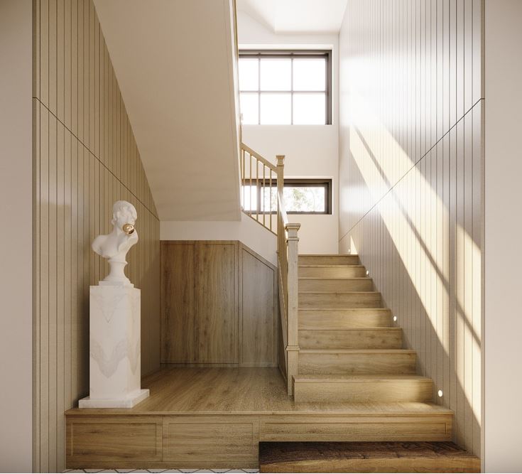 Gỗ thể hiện sự cứng cáp và mang lại vẻ đẹp sang trọng, đẳng cấp cho ngôi nhà. Do đó, lan can cầu thang bằng vẫn trở thành sự lựa chọn hàng đầu của nhiều gia chủ yêu thích sự mộc mạc, tự nhiên.